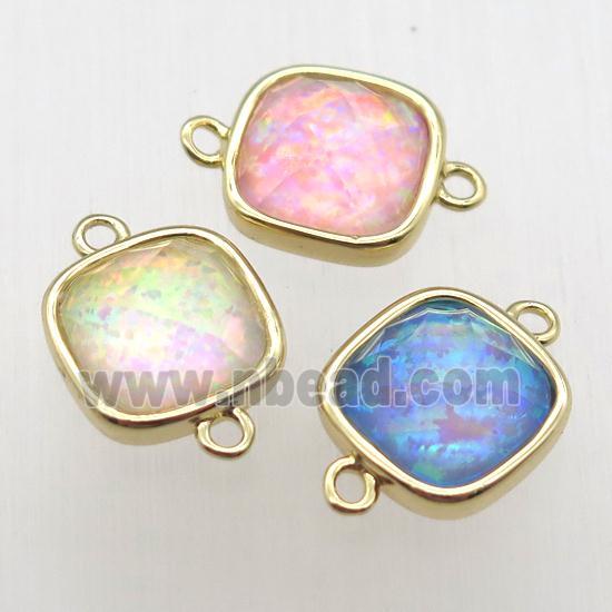 • mixed color Fire Opal square connector, synthetic, gold plated