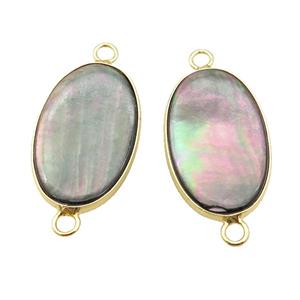 gray Abalone Shell oval connector, gold plated, approx 15-25mm