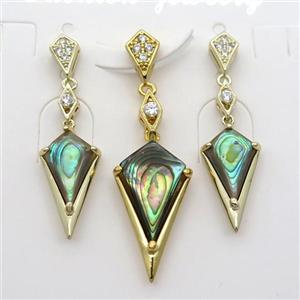 copper Stud Earrings and pendant pave zircon with Abalone shell, gold plated, approx 8-12mm, 10-16mm
