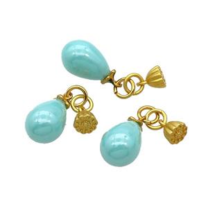 Teal Pearlized Plastic Teardrop Pendant Gold Plated, approx 6.5mm, 10-15mm