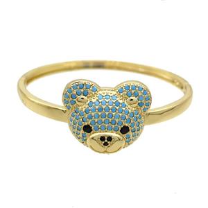 • Copper Bear Bangle Pave Turqblue Zircon Gold Plated, approx 10-12mm, 14-17mm, 50-60mm dia