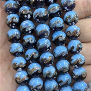 • Porcelain Round Beads Blue Wave, approx 14mm, 27pcs per st
