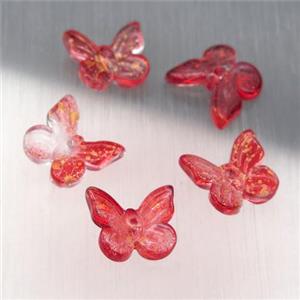 red crystal glass butterfly beads, electroplated, approx 13-15mm