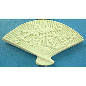 White Carved Cinnabar imitation Bead, Fan Style, 38x20mm, 5mm thick