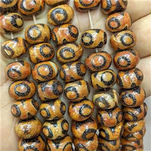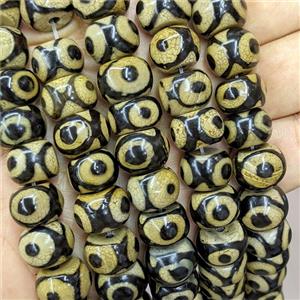 Natural Tibetan Agate Barrel Beads Yellow Dye, approx 9-13mm, 13pcs per st