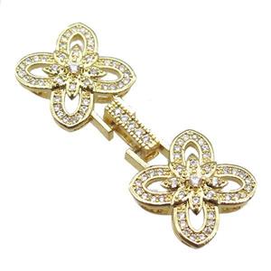 copper connector clasp paved zircon, clover, gold plated, approx 15-43mm