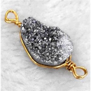 druzy quartz connector, silver electroplated, freeform, wire wrapped, approx 18-30mm