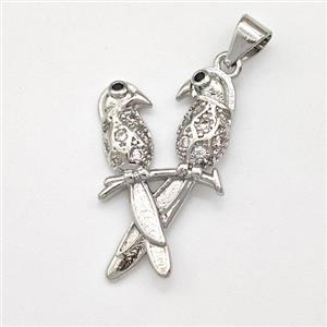 Copper Birds Pendant Micro Pave Zirconia Parrot Platinum Plated, approx 13-20mm