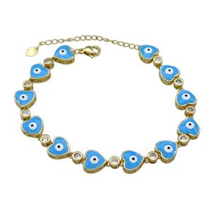 Copper Bracelet Blue Enamel Evil Eye Heart Adjustable Gold Plated, approx 4-35mm, 20-27cm length