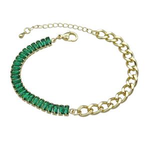 Copper Bracelet Pave Green Crystal Rectangle Gold Plated, approx 11-13mm, 5.5mm, 21-26cm length