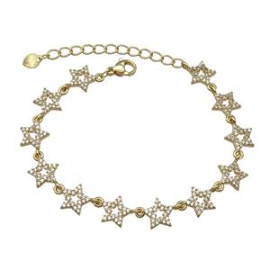 Copper Star Bracelet Pave Zircon Gold Plated, approx 7mm, 17-22cm length
