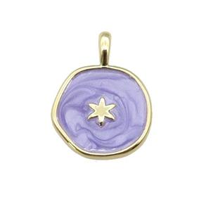 copper coin pendant with lavender enamel, star, gold plated, approx 14mm