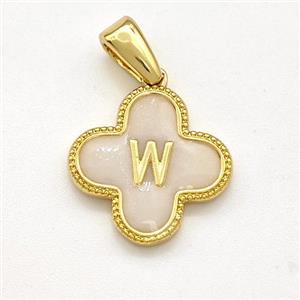Copper Clover Pendant Micropave Zirconia White Fire Opal Flower 18K Gold Plated, approx 24mm