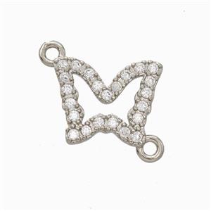Copper Butterfly Connector Pave Zirconia Platinum Plated, approx 10-13mm