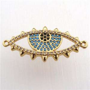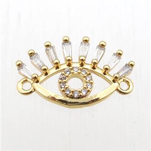 copper evil eye connector pave zircon, gold plated, approx 8-15mm
