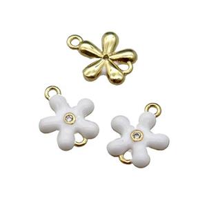 Copper Flower Evil Eye Connector White Enamel Gold Plated, approx 8mm