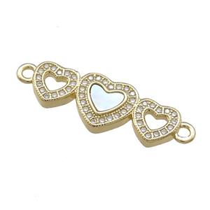 Copper Heart Link Connector Pave Shell Zircon 18K Gold Plated, approx 10-25mm