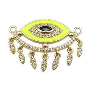 copper Evil Eye pendant paved zircon with yellow enamel, gold plated, approx 25-33mm