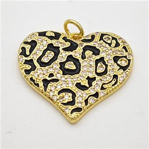 • Copper Heart Pendant Pave Zirconia Black Enamel Gold Plated, approx 20mm