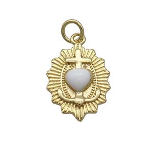 Copper Heart Pendant Pave Zirconia Evil Eye White Enamel Gold Plated, approx 18mm