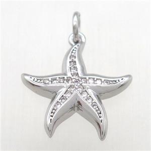Copper Starfish Pendant Pave Zirconia 18K Gold Plated, approx 10mm