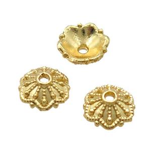 round copper carved beads, Unfade, gold plated, approx 6mm dia