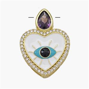 Copper Heart Pendant Pave Zirconia White Enamel Gold Plated, approx 18-20mm