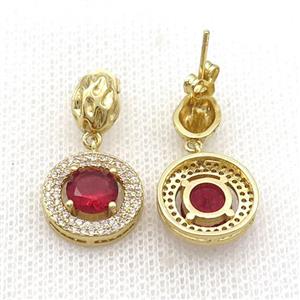 Copper Stud Earring Pave Zircon Red Crystal Gold Plated, approx 14mm, 7-9mm