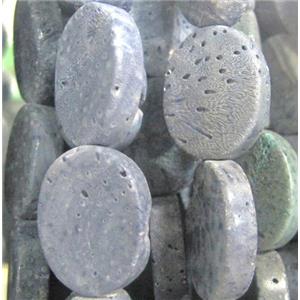 blue coral fossil stone bead, flat-oval, approx 15x20mm, 7mm thickness