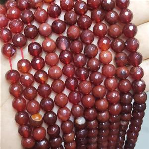 Natural Red Carnelian Agate Beads Faceted Round A-Grade, approx 6mm dia
