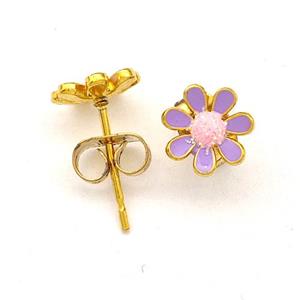 Copper Sunflower Pendant Purple Enamel Gold Plated, approx 25-27mm