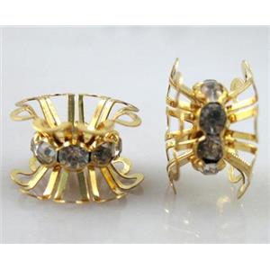 Rondelle Mideast Rhinestone Beads with bead-cap, gold plated, 10mm dia