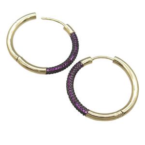 copper Hoop Earring pave zircon peacocktail gold plated, approx 18-25mm, 14mm dia