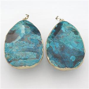 blue Ocean Jasper pendant, faceted oval, gold plated, approx 12-60mm