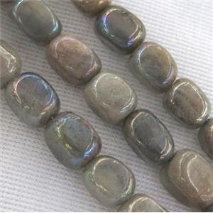 Labradorite bead, faceted rectangle, AB color, approx 8x10mm