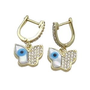 Copper Latchback Earring Butterfly Pave Zircon Shell Gold Plated, approx 12mm, 11mm