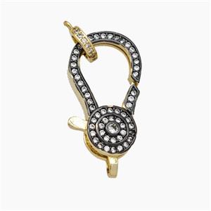 Copper Lobster Clasp Pave Zirconia Gold Plated, approx 5-17mm, 11-22mm