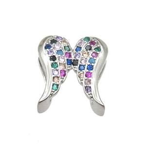 copper angel wings pendant paved zircon, platinum plated, approx 7-14mm