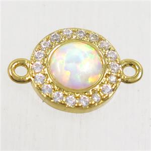 copper circle connector paved zircon with fire opal, gold plated, approx 8.5mm dia