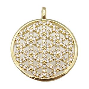 copper Circle pendant paved zircon with yellow enamel, eye, gold plated, approx 20mm