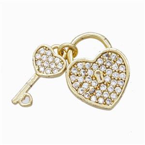 Copper Heart Lock And Key Pendant Micropave Zirconia Gold Plated, approx 6-13mm, 11-14mm