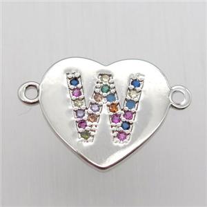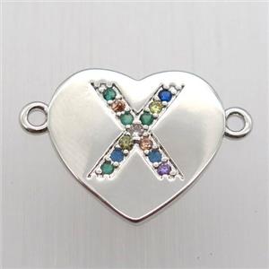 copper cupid heart pendant paved zircon, platinum plated, approx 22-25mm
