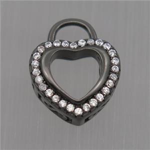 copper Heart pendant paved black zircon, gold plated, approx 7mm