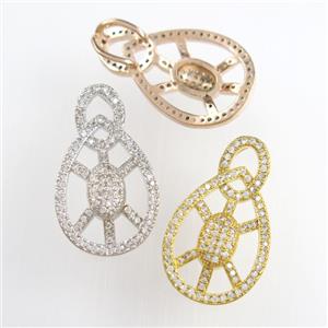 Copper Tortoise Charms Pendant Pave Shell Zircon 18K Gold Plated, approx 14.5-20mm