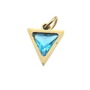 Stainless Steel Triangle Pendant Pave Aqua Zircon Gold Plated, approx 6x6mm