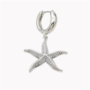 Copper Starfish Hoop Earrings Pave Zirconia Platinum Plated, approx 9mm, 14mm dia