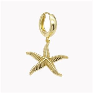 Copper Starfish Hoop Earrings Pave Zirconia Gold Plated, approx 9mm, 14mm dia