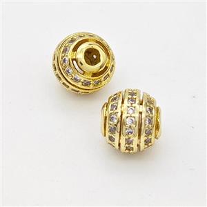 Copper Round Beads Pave Zircon Large Hole Gold Plated, approx 11mm, 5mm hole