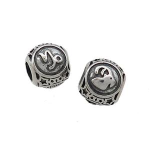 Stainless Steel Heart Beads Zodiac Capricorn Large Hole Hollow Black Plated, approx 12mm, 4mm hole