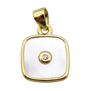 white Pearlized Shell square pendant, gold plated, approx 11x11mm